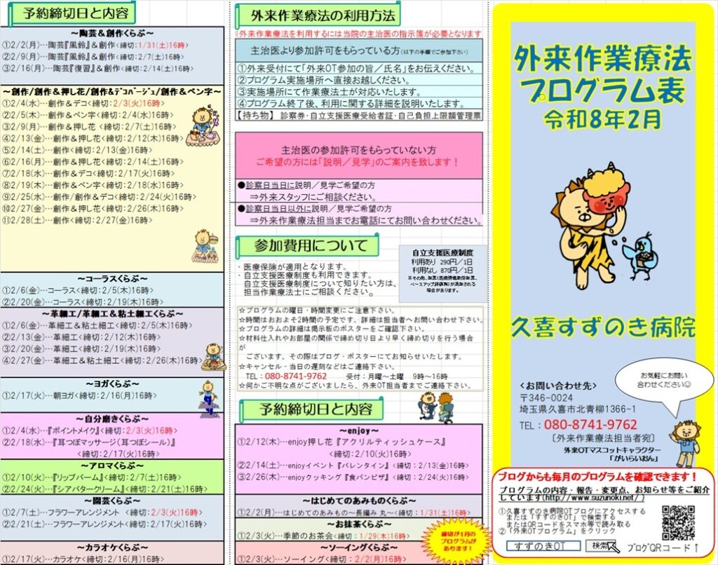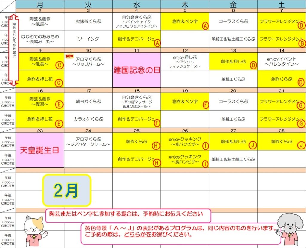 2026年2月のプログラム表を掲載致します。
