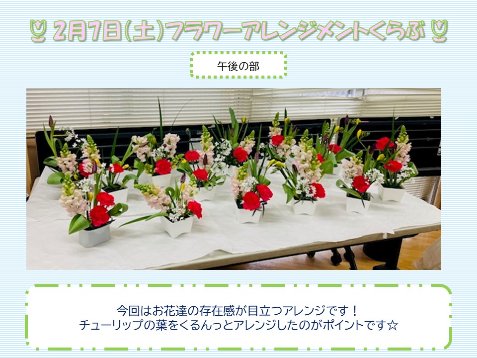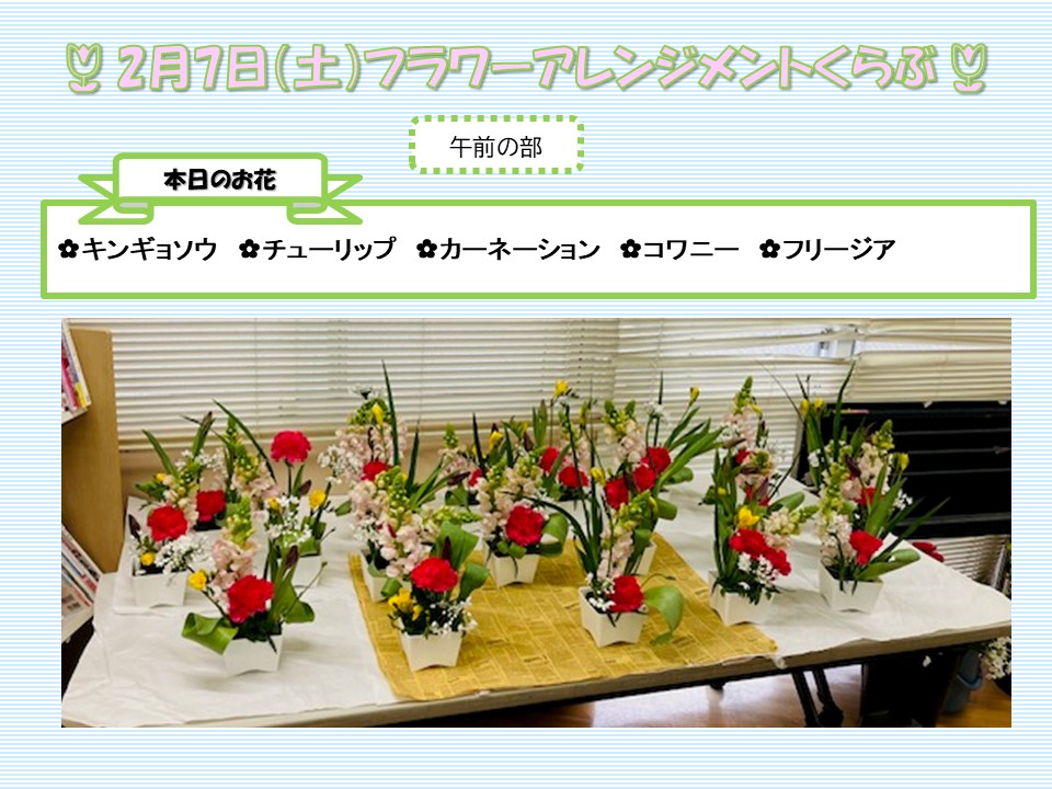 さて、2月7日(土)に行ったフラワーアレンジメントくらぶのご報告です。