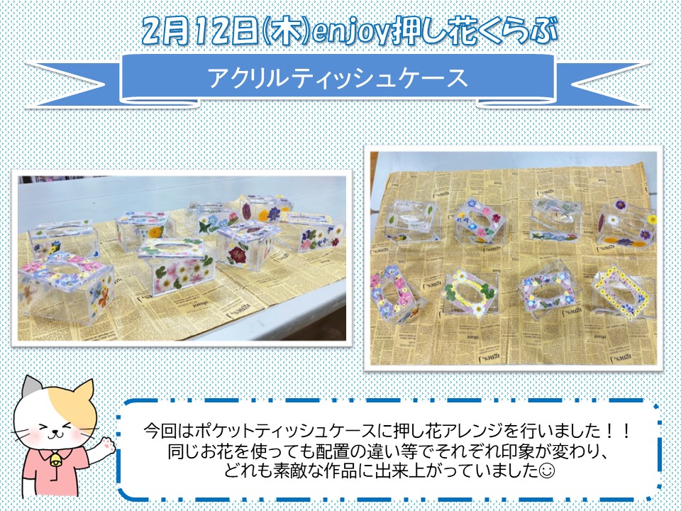 さて、2月12日(木)に行ったenjoy押し花くらぶのご報告です。
