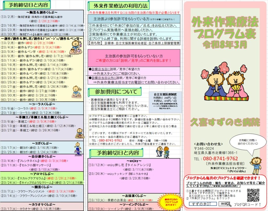 2026年3月のプログラム表を掲載致します。