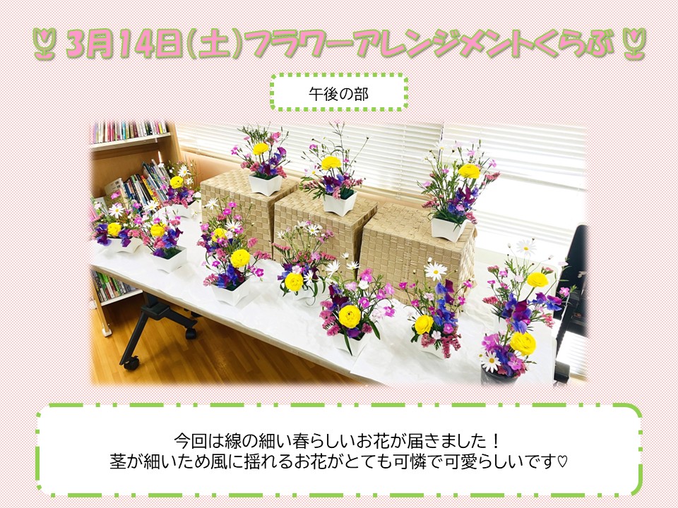 さて、3月14日(土)に行ったフラワーアレンジメントくらぶのご報告です。